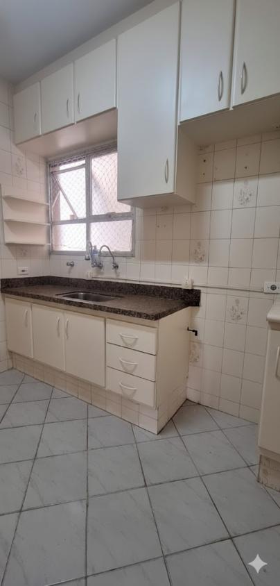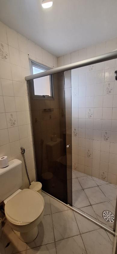 Sala de jantar e TV, sacada, 2 dormitórios, banheiro social, cozinha, área de serviço com banheiro e 1 vaga.